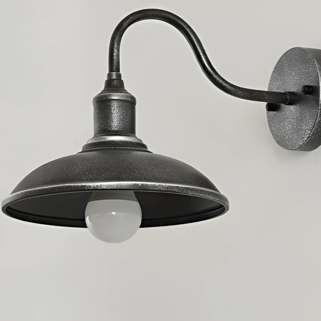 Cette applique extérieure en fer forgé allie robustesse et style industriel pour illuminer vos façades avec caractère. Conçue pour résister aux conditions climatiques les plus rudes, elle offre une solution d'éclairage fiable et esthétique. Son design en col de cygne et sa finition bronze huilé apportent une touche d'authenticité à vos extérieurs. Idéale pour les porches, patios, garages ou granges, cette applique murale extérieure transforme chaque espace en un lieu chaleureux et accueillant.